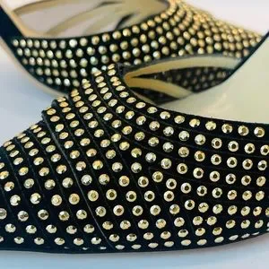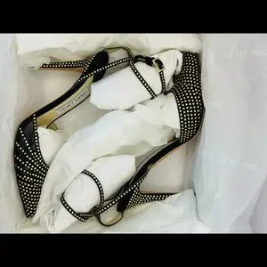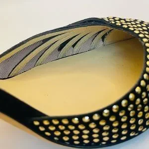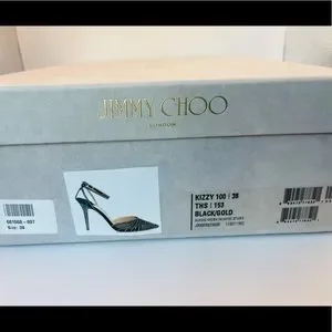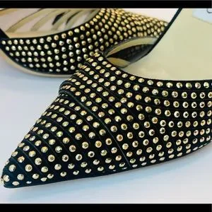 Jimmy Choo Size 8(38) Kizzy 100 heel THS 153 Black/Gold Suede/Mesh with mini Studs - Never worn in Box with dust cover. New Condition