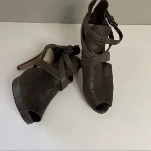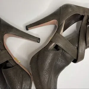 Prada Brown Suede Leather Cutout Peep-toe Stiletto Heels Platform Sz 37 Italy