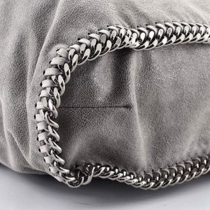 Stella McCartney Falabella Shaggy Deer Large Grey bag. Preloved 100% authentic. Exterior has no marks or damage, interior has several ink marks & stains as seen in photos, gunmetal discs and chains have some tarnish, Shaggy Deer fabric with signature logo nylon fabric lining and polished gunmetal hardware, Made in Italy, Vegan Leather The bag's exterior features a signature shimmery finish and diamond-cut chain-link trim, tethered zip pouch, spacious interior .Magnetic-snap closure. Interior zip and smartphone pockets; clip-in zip pouch. Logo-jacquard lining made from recycled water bottles. In good preloved condition, with signs of use as stated. Comes with Stella dust bag. *FIRST PHOTS & LAST 3 PHOTOS ARE STOCK PICS*