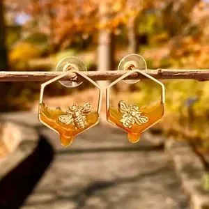 “Oh Honey” Bee Honeycomb Hexagon Pollen Stud Cute Environmental/Nature Earrings
