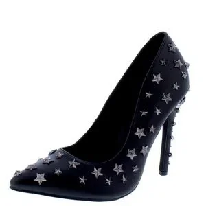 Black Vegan Leather Crystal Embellished Pointed Toe High Heel Stiletto Pump