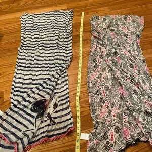@jannaremien greetings, the scarves are approximately 12 inches wide and for the length - please notice the pictures with the tape measurements.