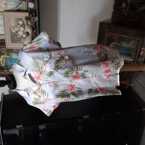 Womens Tropical Hawaiian Sleepwear Loungewear pajamas top shirt, Palm Flowers button up front pink white sage Green cream coloration, short sleeve, Summer spring fall wear