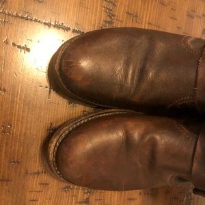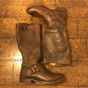 Well loved Frye "Veronica Slouch" Boots. These are a size 7.5 from my personal closet. They do show some light wear on the toes and heels but otherwise are in great shape. Heel hight is approximately ¾" and the shaft height is 14". These run very true to size.