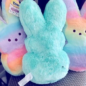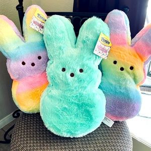 This Peeps Bunny Plush is as soft as a marshmallow! Peep bunnies have the cutest face, perky ears, and a full, round body. This polyester plush features plastic beads inside of it, so you can stand this Peeps plush.