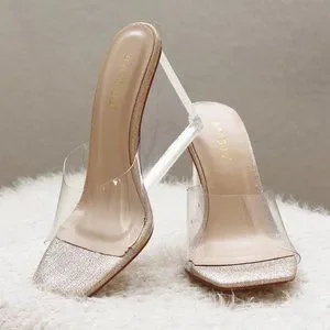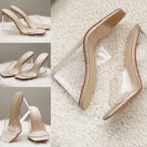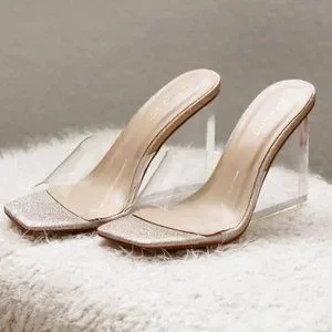 A transparent wedge heel brings contemporary drama to a lofty sandal. Sparkly champagne gold creates a square toe footbed while wide clear vinyl straps accent the vamp for a sleek look. A clear lucite wedge heel makes for an eye-catching finish! Square Toe Clear Wedge Sandals, Easy slip-on wedge, and padded insole give great support and comfort for all-day wear. Transparent Clear Peep Toe Wedge Heel Slide Mules Sandal Shoes. You will feel like a princess "Cinderella" wearing a glass slipper! It will elongate your leg and go with every outfit!