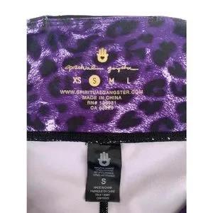Spiritual Gangster Essential leggings, size small. Lavender cheetah print. Double layer waistband and compression fabric for a slim comfortable fit. 7/8 length. Made with 88% polyamide and and 12% elastane. In excellent preowned condition with no noted defects or damage.