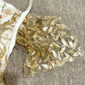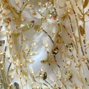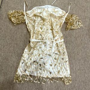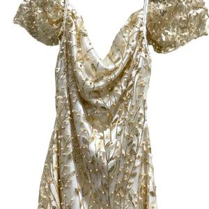 Sister’s the Label PEARL & SILK ‘Juliet’ off the Shoulder Dress. White/Gold Sz S