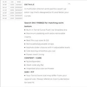 Torrid Vixen Multicolor Chevron Pushup Bikini Swimsuit Top