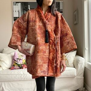 Redesigned multicolour striped crochet midi belted pencil skirt with side slit. I crocheted the belt that is looped between the holes in the knit that can adjust to different sizes with cinching. This was a thrifted small blanket that I redesigned as a skirt. Feels like a synthetic yarn. If it is stretched widthwise the length may shorten. Laid flat approx 30in length, 16.5in width at waist, 12.5in length of slit. Crochet items have some stretch to it and a more open stitching so it can help to wear coloured leggings or stockings or a bodysuit underneath for some coverage. Please ask if you have any questions :) Model is 5’9, US 4
