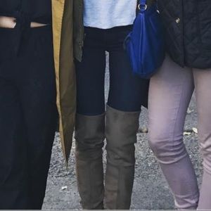 Size 8.5 US women’s. Sexy stretch leather over the knee boots. Beyond comfortable with the thick sole and the butter-like fabric. Keeps you warm while elevating an outfit.