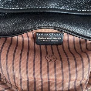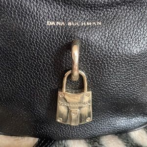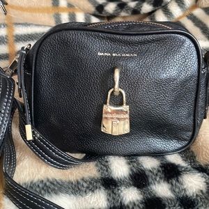 Adorable genuine black leather crossbody by Dana Buchman in excellent used condition. It has a cute gold lock in front snd a long adjustable strap. It’s also very clean inside with many pockets.