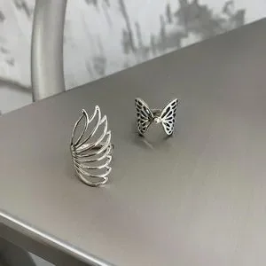Minimalist 925 Sterling Silver Butterfly Wings Ring Unique Bold Statement Ring