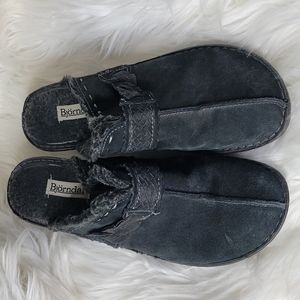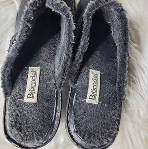 Bjorndal clogs, black trimmed in white, faux fur linning. Please believe me when I say they are Soooo Comfortable... Tire of my sister Joking me that they are Too Big for me...Size 11