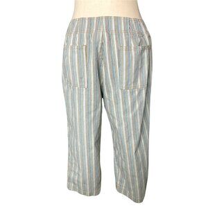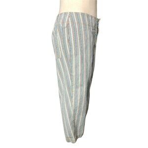 Liz Claiborne Lizwear Jeans Michaela Capris Womens 12 Striped Pleated Waist Lightweight Denim