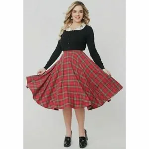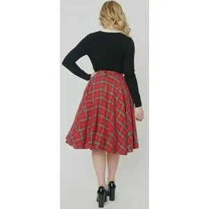 Unique Vintage Magnolia Place Sally Swing Skirt Red Green Plaid Retro Flannel