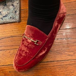Steve Madden burnt orange suede loafers with gold buckle detail