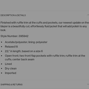 • Delicate, feminine, ruffle trim on sleeves & pockets
