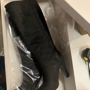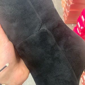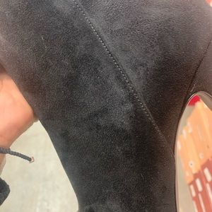 These Knee High Boots demand attention in black soft plush velvety Faux Suede material.
