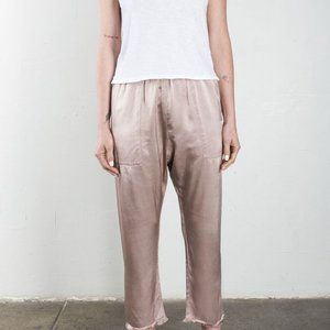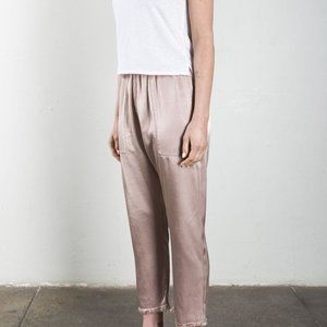 Slight drop rise fit with elastic waist. Raw-edge hem detail - front pockets. Dyed in Los Angeles.