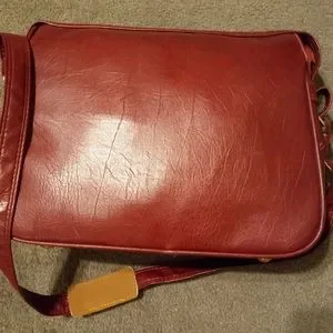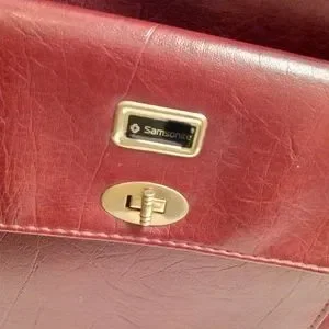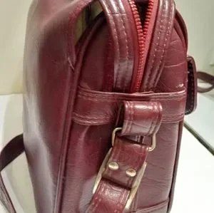 Burgundy Samsonite Travel Bag. Bag has one large zippered pocket and one large open pocket inside, one larger outside pocket. Picture #3 closest to true color. Pre-owned in excellent condition.
