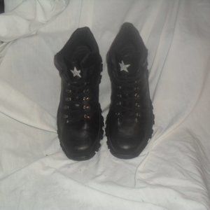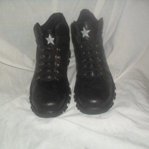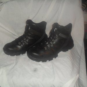 Here is a pair of Men's work boots with a composite toe. They are slip resisting, oil resisting, and non marking. The soles are puncture resistant. They are a size 11.5 with 45 stamped on bottom of the sole. They are true to size and comfortable. They are not a very heavy boot. They are leather with a removable insole. They have been worn, but not much. They are in great condition. They come with the box. The brand is INDESTRUCTIBLE!!!