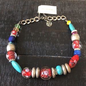 NWT Erica Lyons USA Signed Worn Silver Tone & Colorful Beads Artsy Necklace!