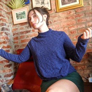 Cute thin mock-neck sweater from Modcloth. Super super soft material, front Knot detail. Really pretty space-dyed, deep blue fabric. Size small, but roomy. Sleeves are quite long, go to my fingers.