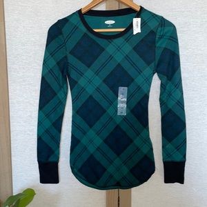 Old Navy Green/Black/Navy Plaid Thermal Top, XS