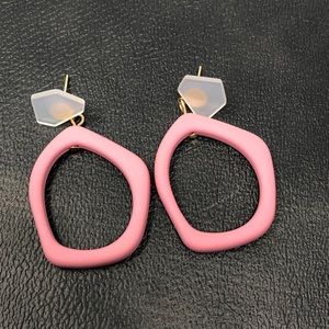 Boutique Geometric Boho Pink Dangle Earrings. Open hollow geo shape boho style earrings. Pink color. Dangle earrings with stud back. 2 1/4“ length. Brand new boutique item.