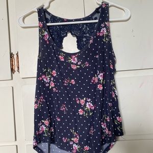 Navy Floral Lace Tank Top S