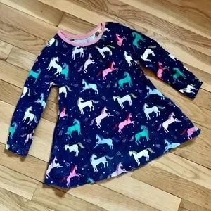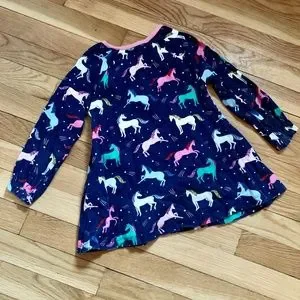 This is an adorable Mini Boden Girls' Rainbow Unicorn Tunic Dress with pockets! It features long sleeves with elasticized wrist and hidden pockets on the side for all her special treasures. 100% cotton. GUC due to normal wash wear. No stains or defects noted. Smoke free/one pup home.