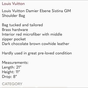 Authentic LV gorgeous bag. Louis Vuitton Damier GM Ebene Sistine GM. Almost mint condition. Has already been authenticated by posh. I have never carried.
