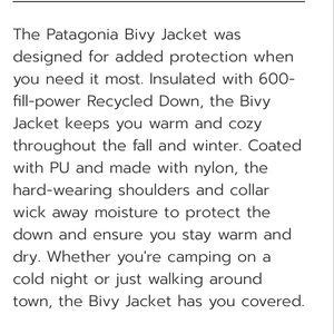 SOLD Patagonia Bivy Down jacket. EUC like new