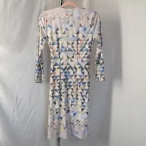BCBGMaxAzria Adele Wrap Dress. Women's XS Tall. True wrap dress, cream base with blue, green, orange and yellow patchwork-like triangles. Long sleeve. Excellent condition.