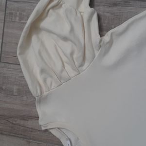 brand new without tags!! colir is off white/ivory...fabric tag in pics..french terry..pretty puff sleeve detail..size SMALL..MEASURES FLAT ACROSS 17"..LENGTH 25"...VERY PRETTY and feels great to the touch..