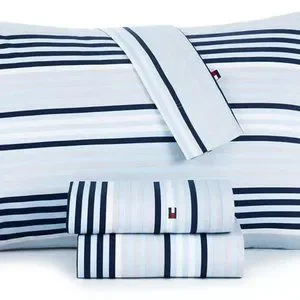 Queen 100% Cotton Percale Sheet Set in Bold Ocean Stripe 4-Piece Hilfiger Sheet