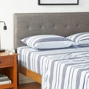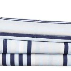 Classic blue white and navy stripes bedsheet set incorporate a Soft Cotton Percale Sheet Set in Bold Ocean Stripe accents for the bedroom décor style theme with Hilfiger Sheet Set. This premium quality sheet set is wrinkle and fade resistant. The smooth, light weight fabric makes it breathable and comfortable for a good night's sleep.