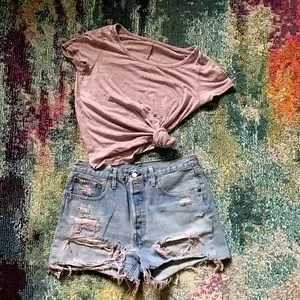 Vintage 501s, 100% cotton distressed Levi jean shorts. These will become a hot summer favorite! Super cute with a tee, crop top, or flowy tank top.