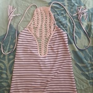 New without tag acacia swimwear Teahupo'o one piece in cape cod stripe size medium. Hygienic liner intact. Never worn, brand new condition. Not looking to trade or negotiate due to fees