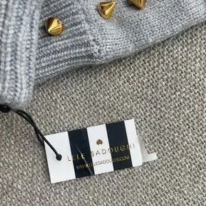Grey soft viscose, poly and nylon blend. Hand embellished with 14K plated gold studs. One size. New with tags.