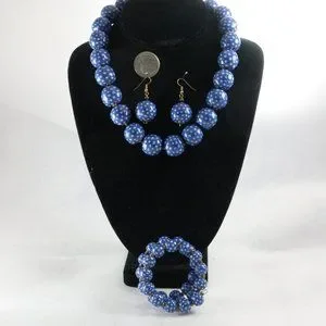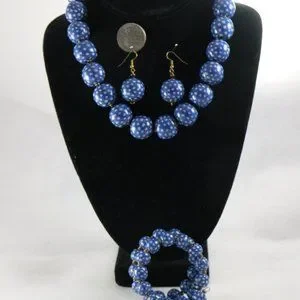 KAZURI Beads Candy TingTing 18 inch Blue/White Necklace + Earrings + Bracelet