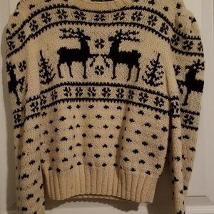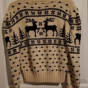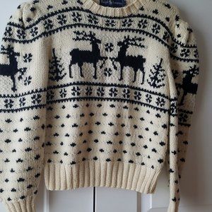 Unique branded Ralph Lauren sweater 100% wool, knitted with the original branded pattern throughout the sweater : in the upper part of the sweater and front, back and on the sleeves - incomparable deers. Quality mark.