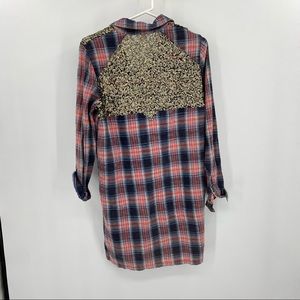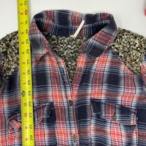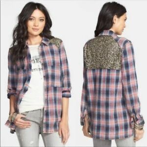 Free People Plaid Sequin Button Down XS