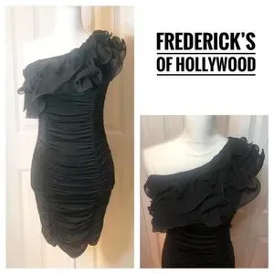SOLD! Frederick’s of Hollywood -Sexy One-shoulder Ruffle Black Dress