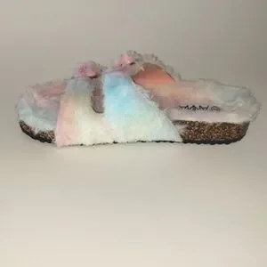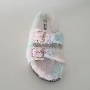 Slip into these Super cute and stylish multi-colored Platform Faux Fur Slip-on Sandals