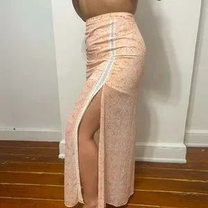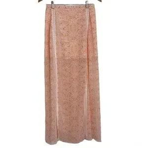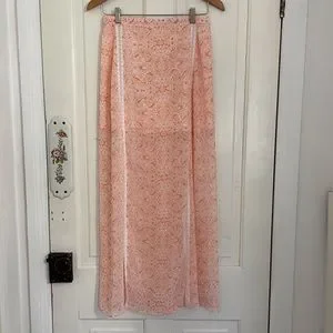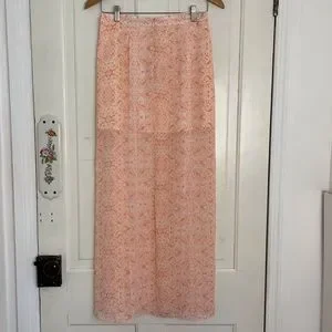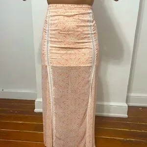 Maxi Skirt by Guess in Shades of Peach Print with White lace contrast