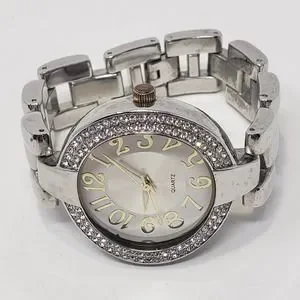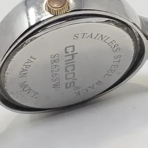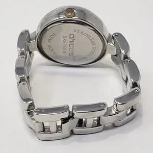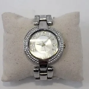Chicos Womens Silver Tone Rhinestone Watch Quartz Round Face Chunky New Battery