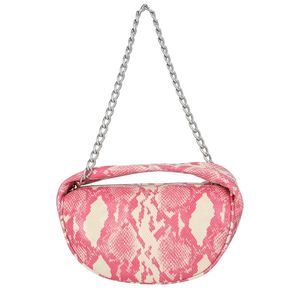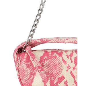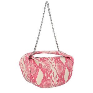 About the brand: Cool luxury pieces for everyday. Made in Italy Color/material: multicolor calf leather Design details: Snake-embossed goatskin shoulder bag featuring graphic pattern in pink and off-white. Integrated carry handle at top. Detachable curb chain shoulder strap with lanyard clasp fastening. Zip closure. Embossed leather logo patch at interior. Cotton twill lining in beige. Silver-tone hardware. Approx. 8.5 length x 5 height x 3.5 width. Supplier color: Cyclamen Measures 8.5in wide x 4.5in high x 3in deep Top handle Shoulder strap Please note: All measurements were taken by hand and are approximate; slight variations may occur. Our products are 100% genuine. In some cases we purchase merchandise from trusted independent suppliers and not directly from the brand owner. In all cases we stand by the authenticity of every product sold on our site.