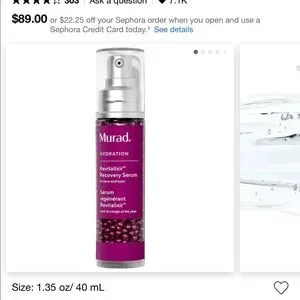 Brand New! Murad recovery serum for dryness fine lines and wrinkles only used once didn’t work for me but it’s a very luxurious Serum, Purchased in Sephora